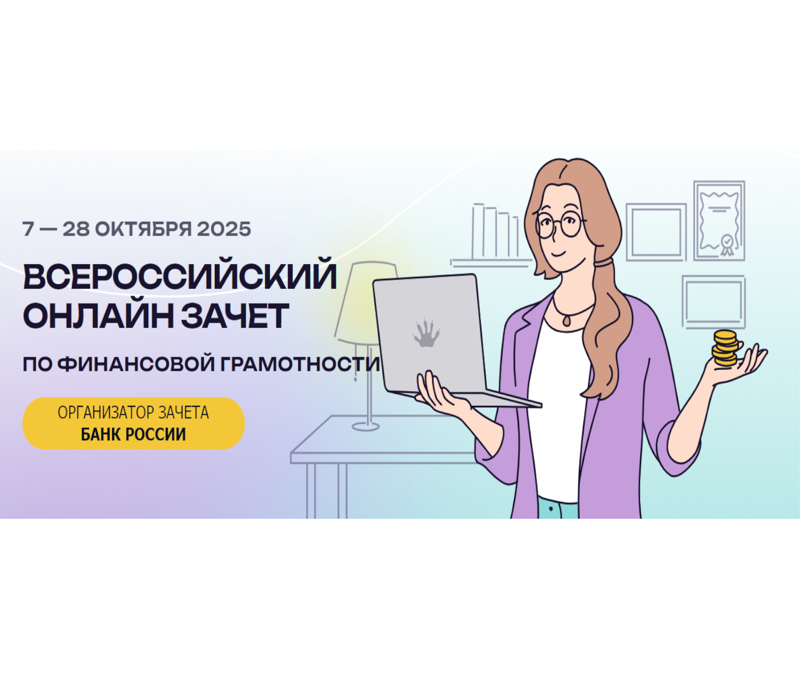 Информируем Вас, что с 7 по 28 октября 2025 года пройдет VIII Всероссийский онлайн-зачет по финансовой грамотности от Банка России.
