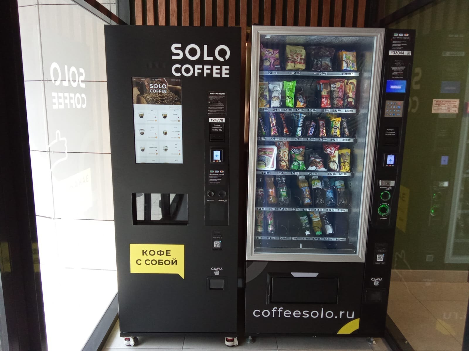 Для Вашего удобства в фойе второго входа в Технопарк (перед коридором, в котором находится Управляющая компания) установлены 2 новых аппарата - микромаркет и кофемашина от компании SOLO COFFEE.