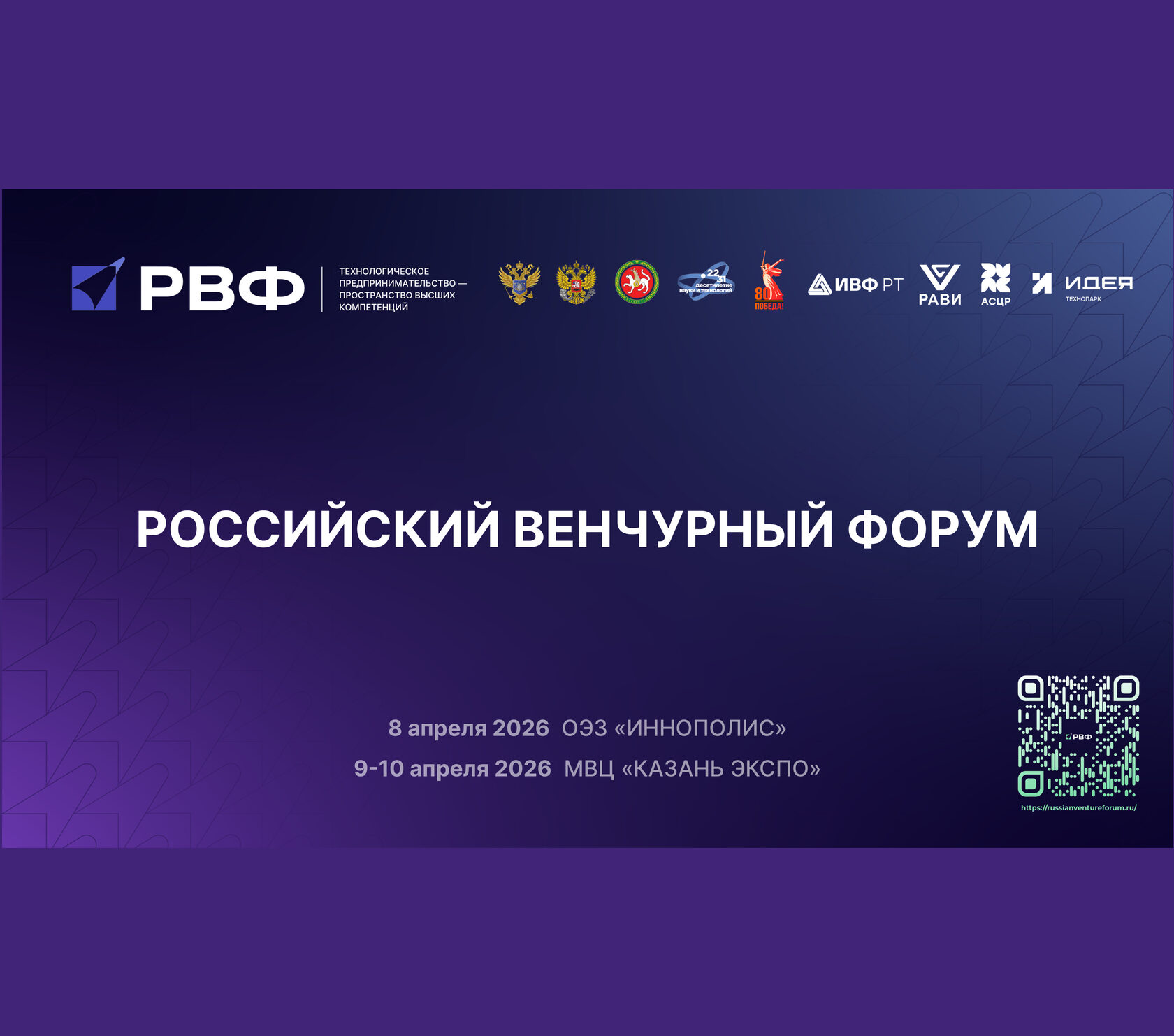 Информируем Вас, что с 9 по 10 апреля 2026 г. пройдет Российский венчурный форум в МВЦ «Казань Экспо».